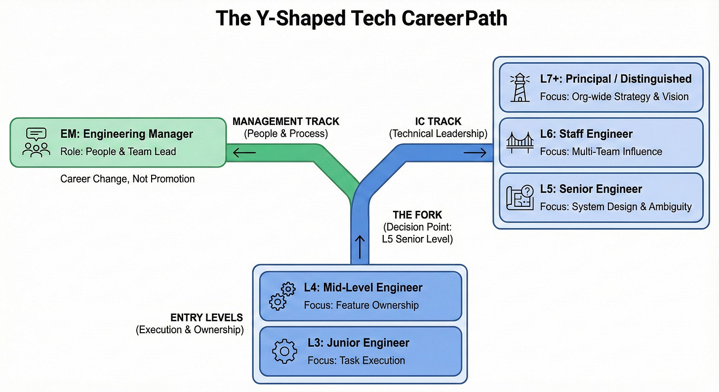 In Big Tech, the career path is not a straight line based on tenure. It is a complex branching system with different rules, expectations, and metrics for every single level.