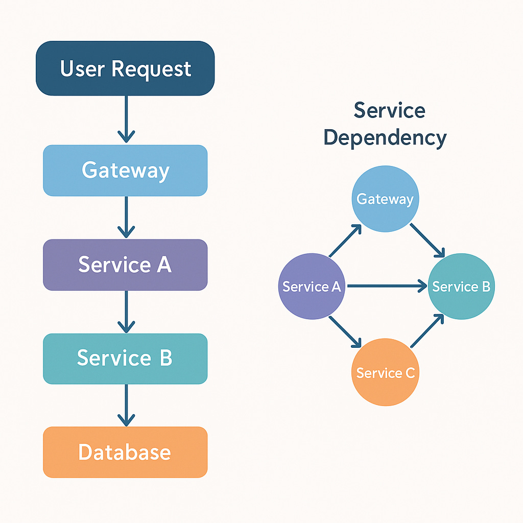 Sometimes a single user action touches many services. For example, placing an order might involve Orders, Payments, Inventory, and Notifications.
