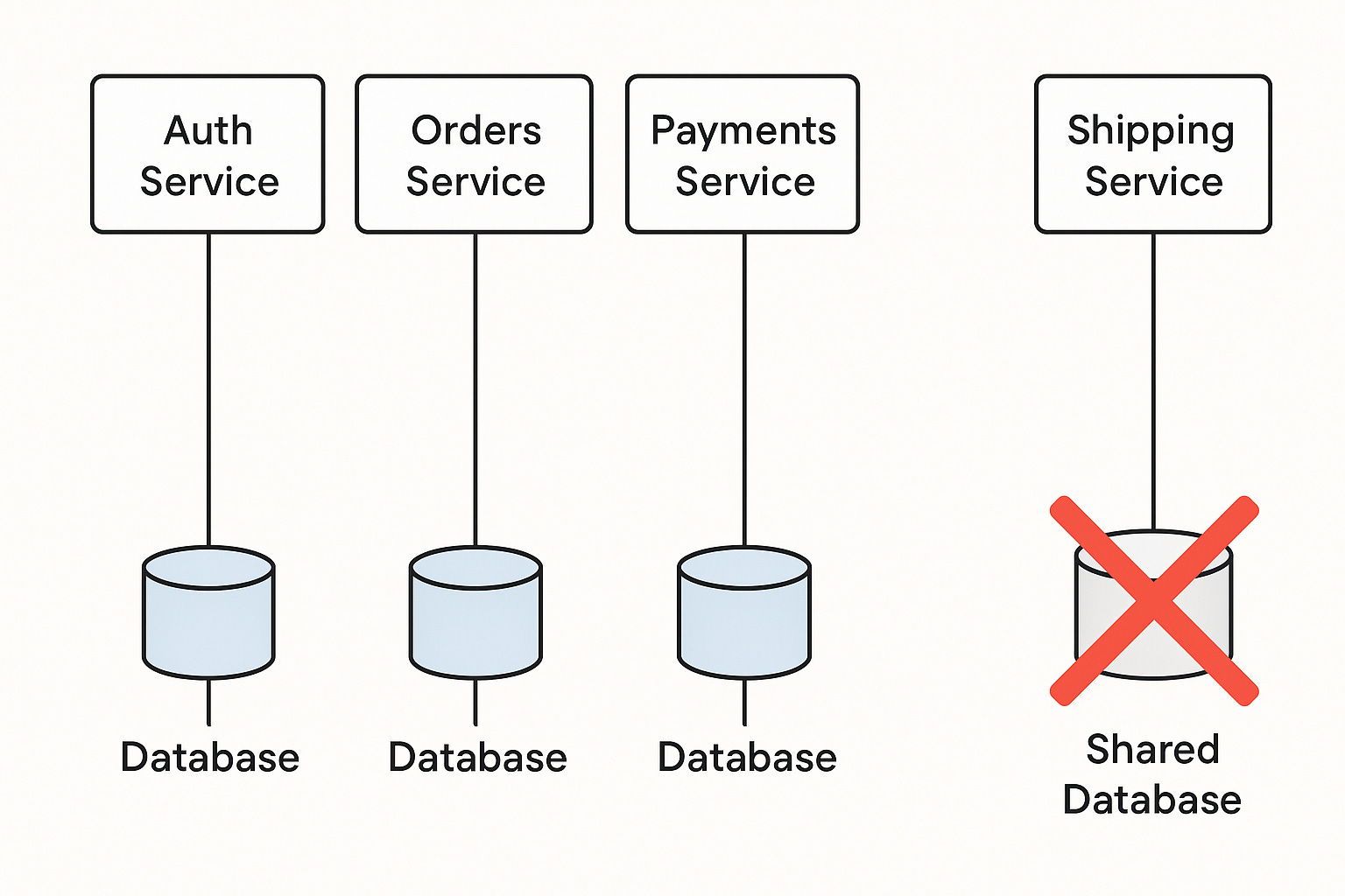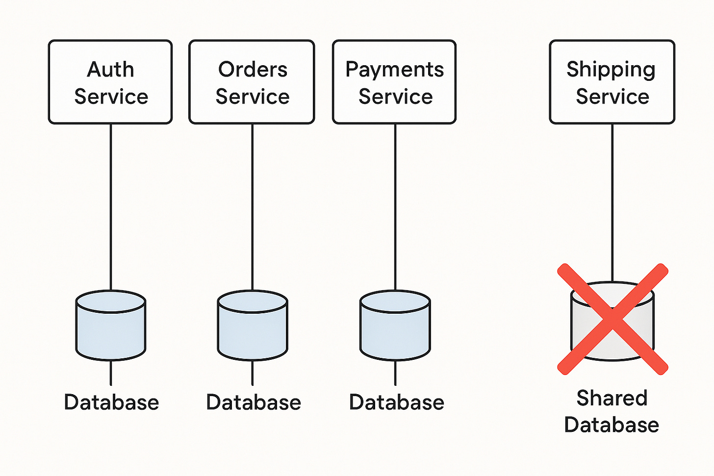 Shared tables create tight coupling and complex failure modes.