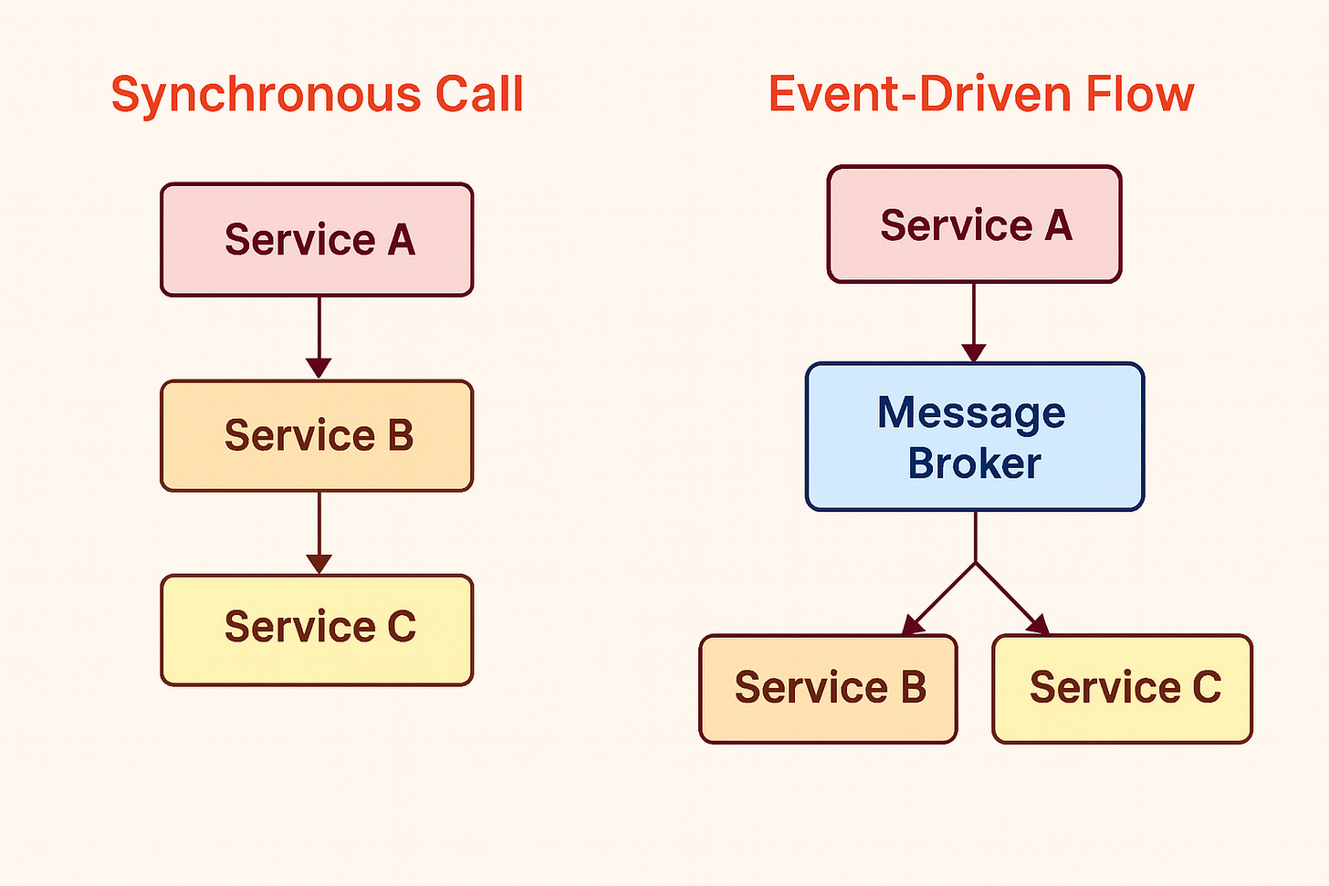 In interviews, it is impressive if you mention both. For example, “I will use synchronous calls for the main request path and events for sending email or analytics.”