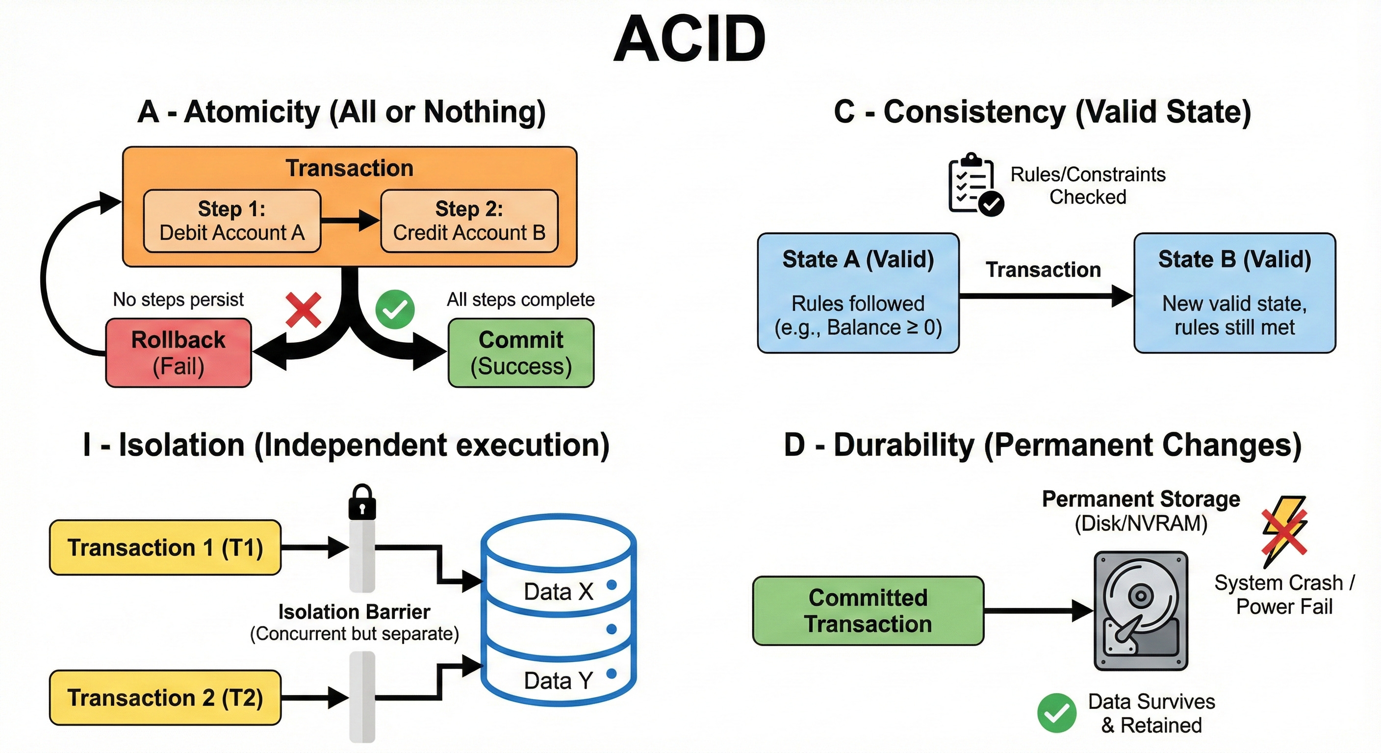 For decades, the gold standard for databases (especially Relational Databases like MySQL or PostgreSQL) has been the ACID model.
