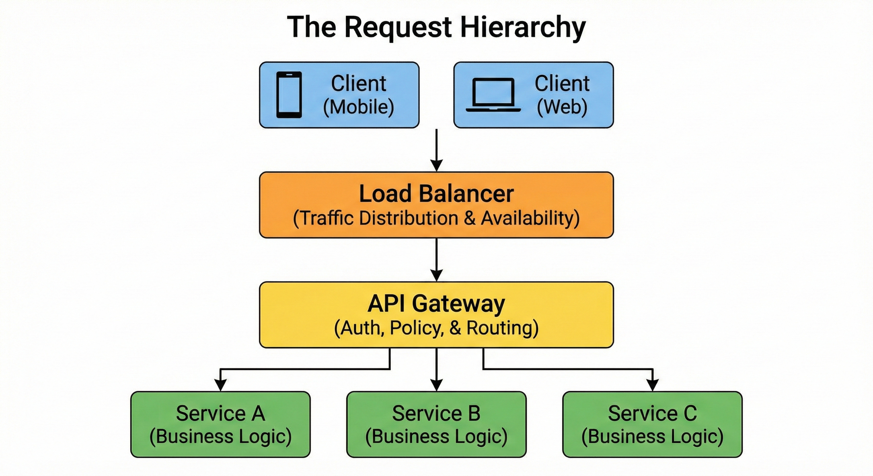 This introduces two critical pieces of infrastructure: the Load Balancer and the API Gateway.