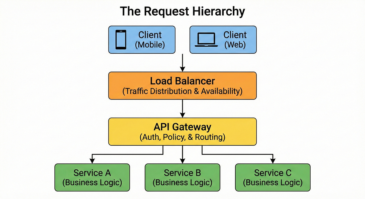 For developers new to system design, these components often appear to perform the same function. Both sit in front of the application code. Both accept requests from the outside world. Both forward those requests to internal servers.