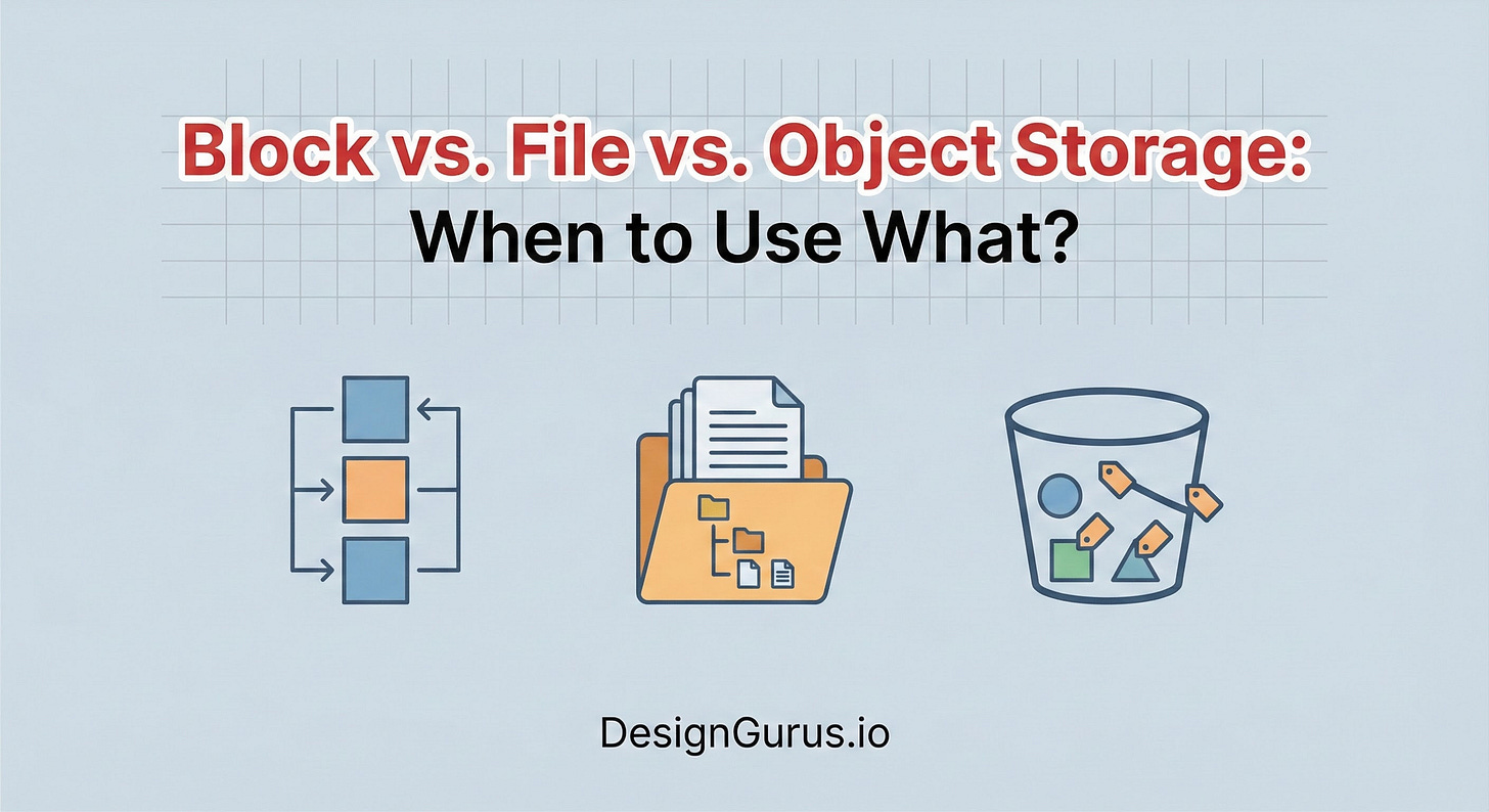 Stop overpaying for cloud storage. Master the technical differences between Block (High IOPS), File (Shared Access), and Object storage (Scalability). Learn when to use databases vs. data lakes.
