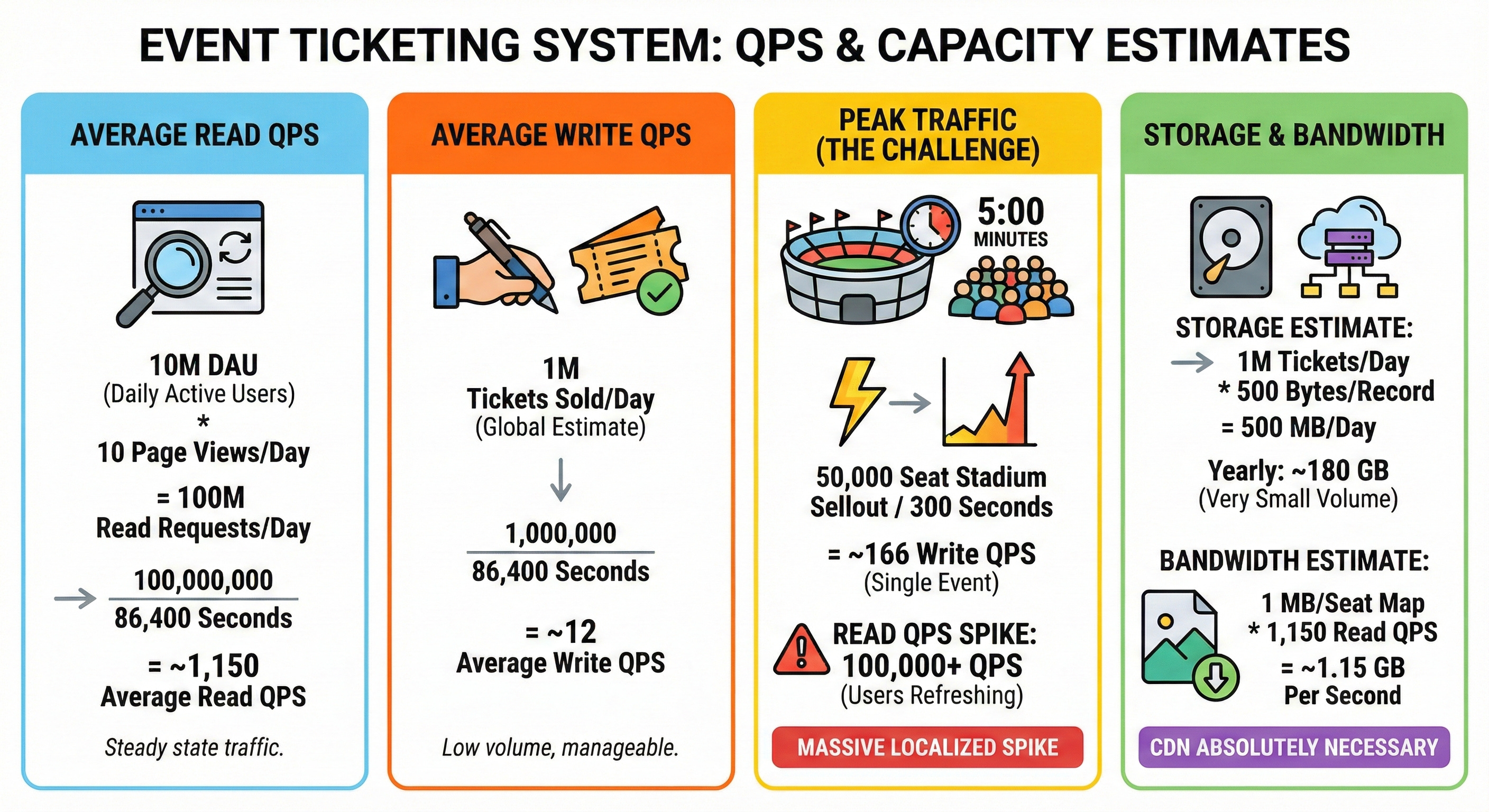 Estimate average write QPS: Assume 1 million tickets are sold globally per day.