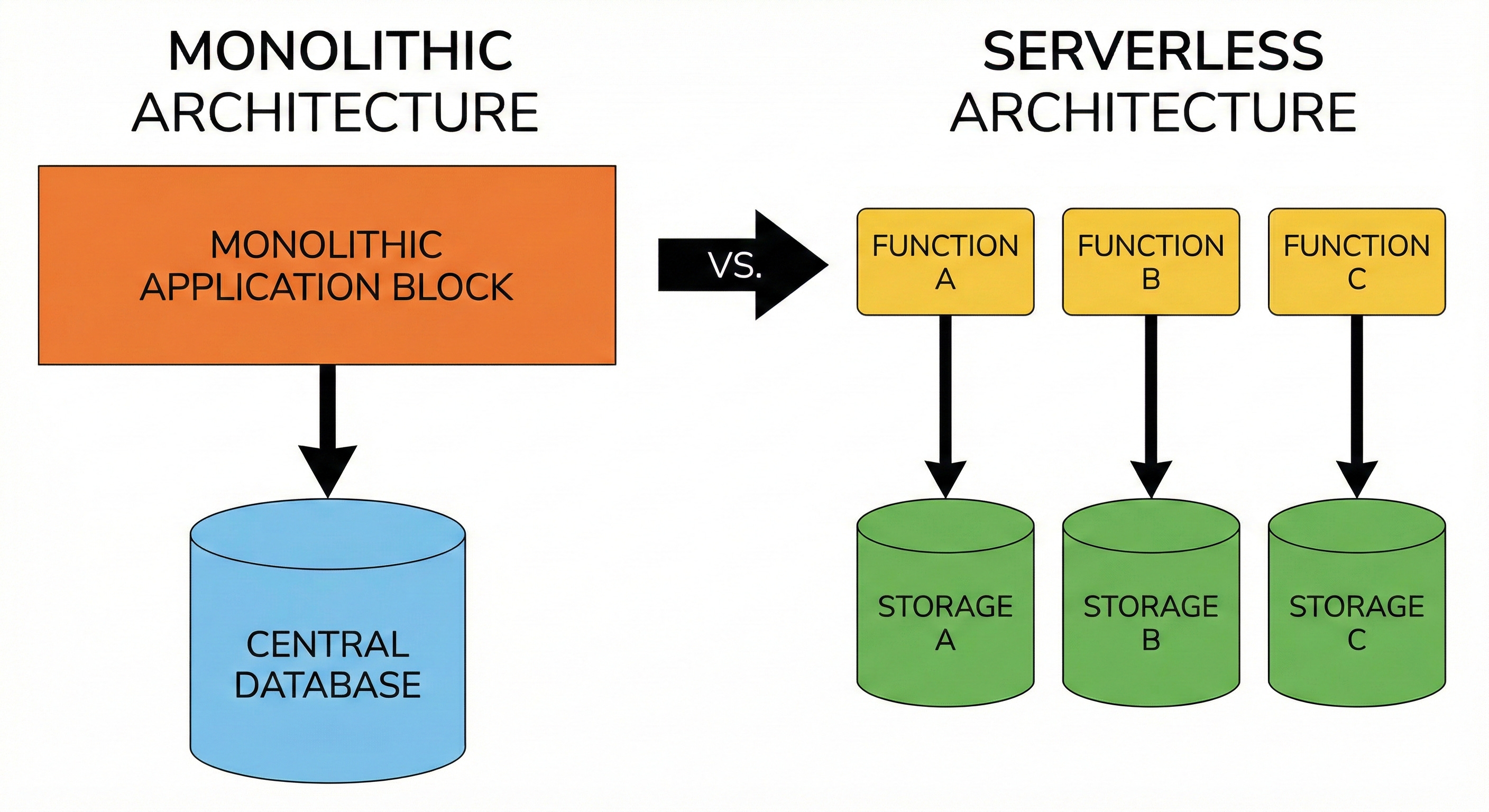 Developers split the application into hundreds of tiny independent scripts called serverless functions. These functions spin up on demand, execute a specific task, and immediately shut down.