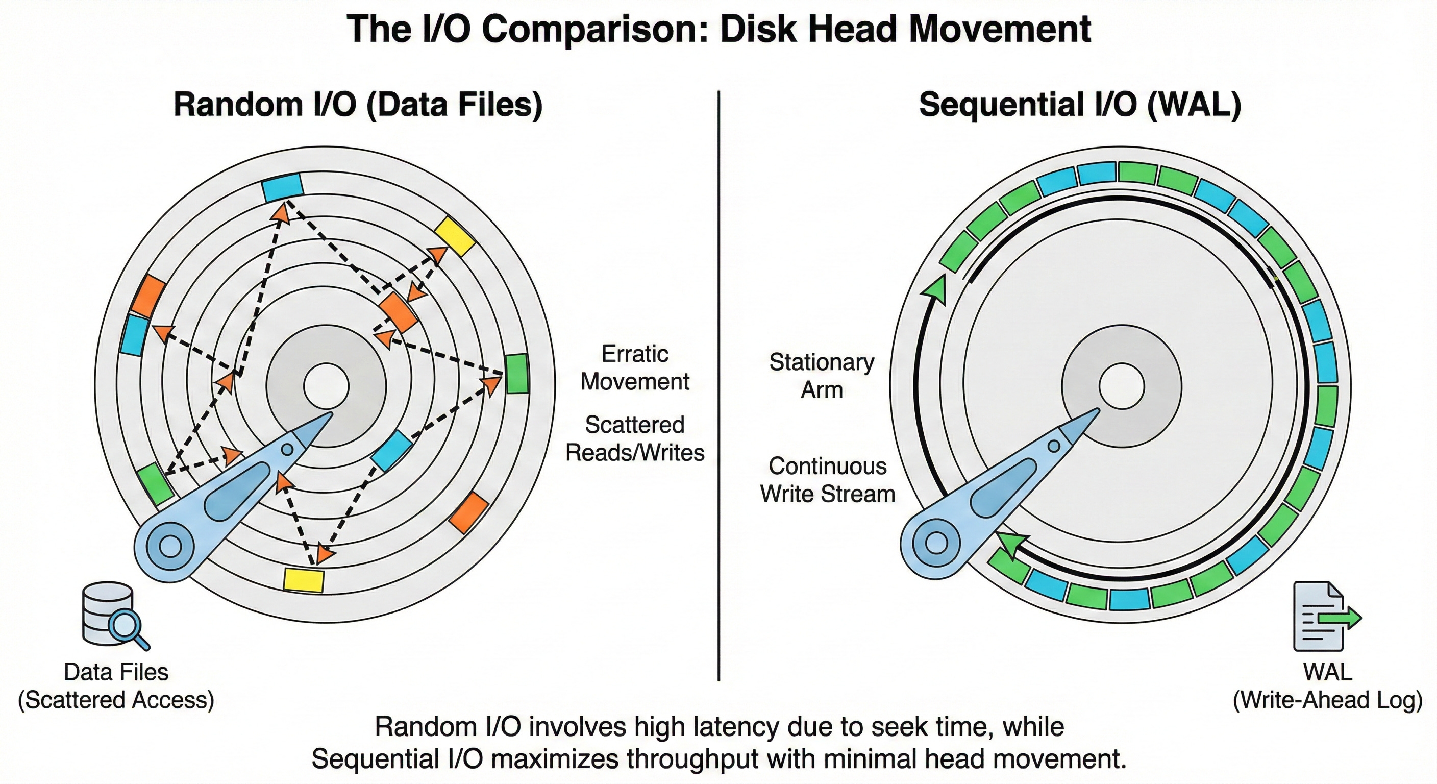 If a database forced the disk to perform these random writes for every single incoming transaction before sending a success response, the system would become incredibly slow.