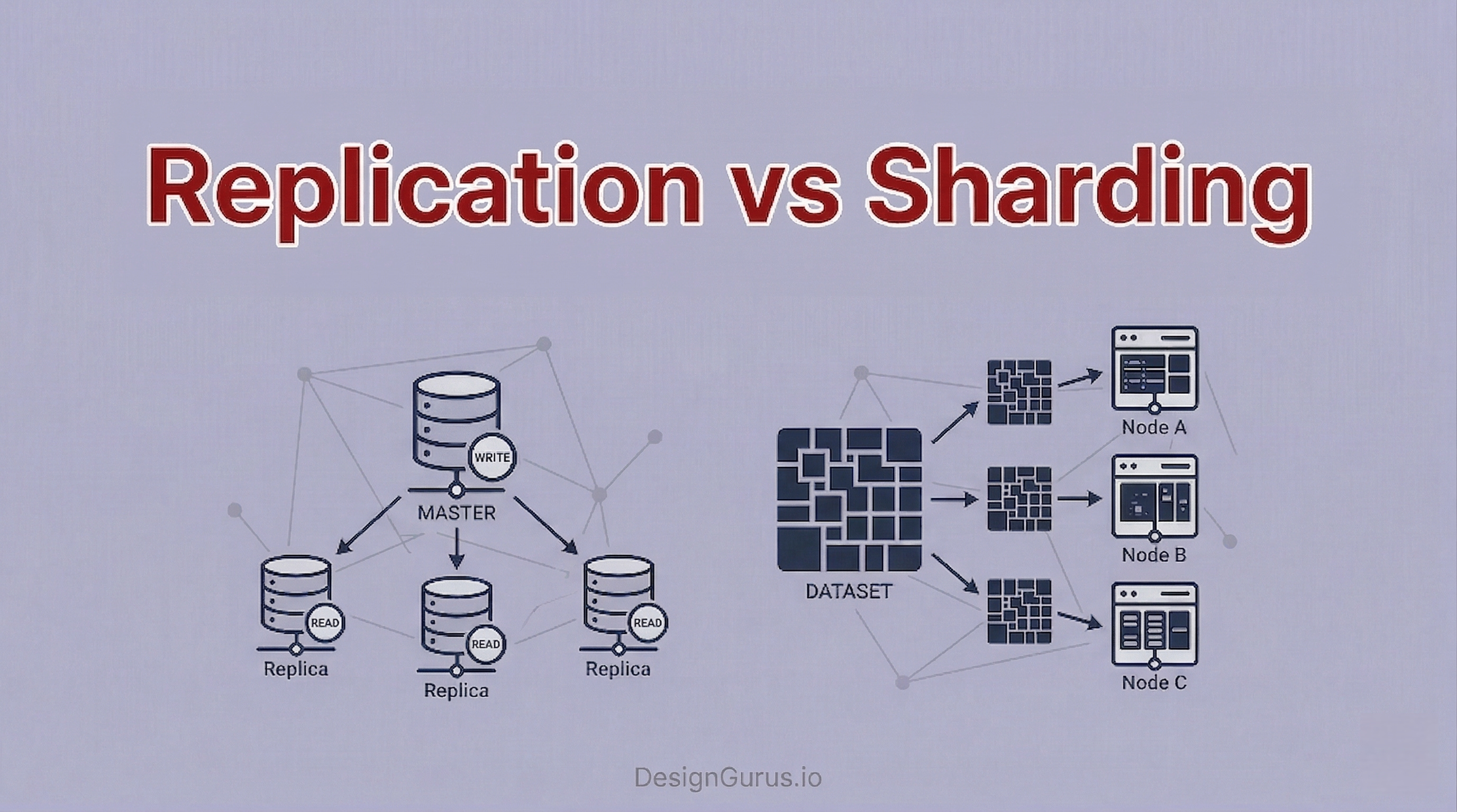 Learn the difference between replication and sharding in simple terms. A guide covering how databases scale, when to use each strategy, and how they work together.