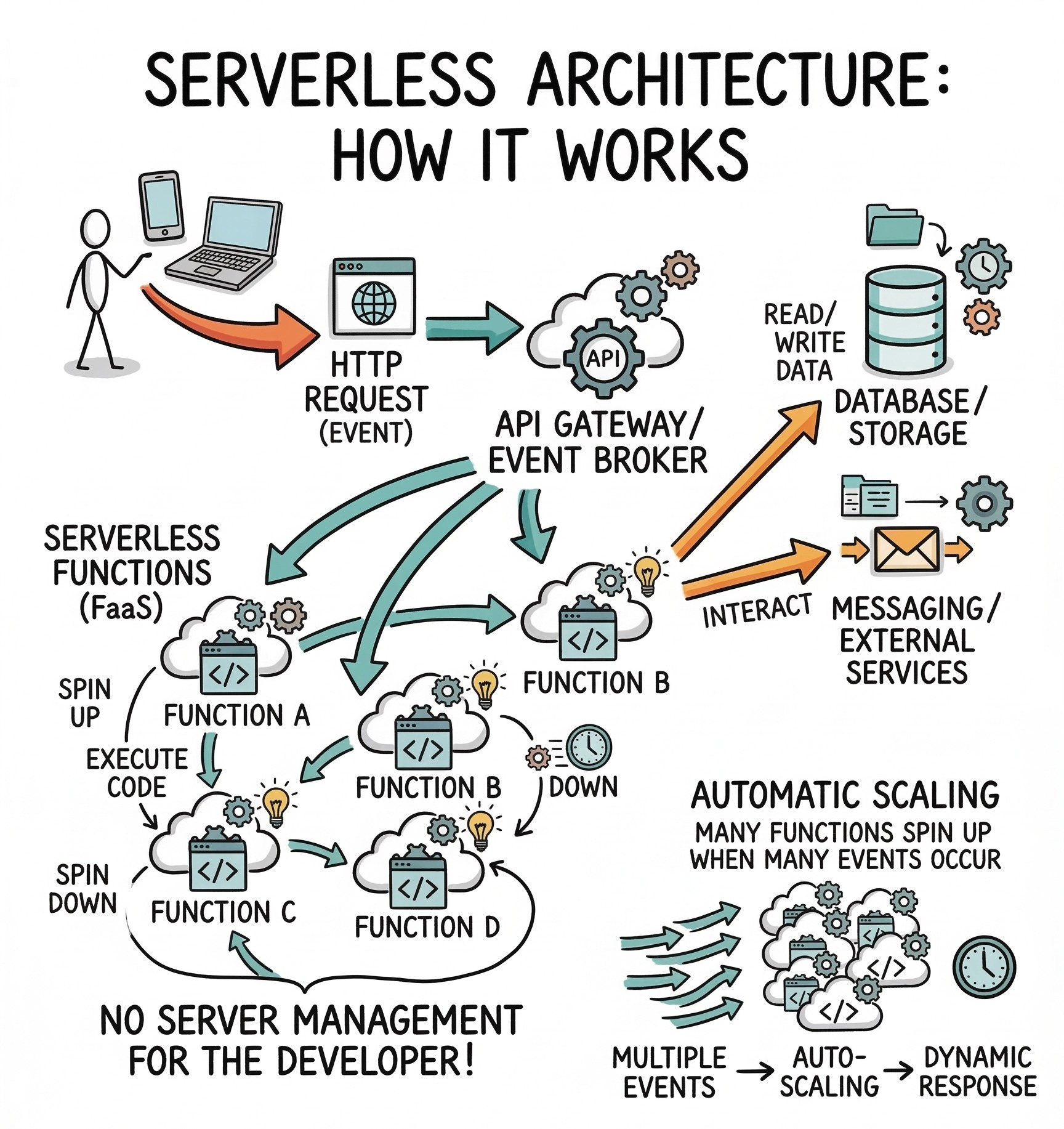 Serverless architecture is a modern execution model that solves these exact scaling problems. The name itself often causes confusion for developers learning system design concepts.