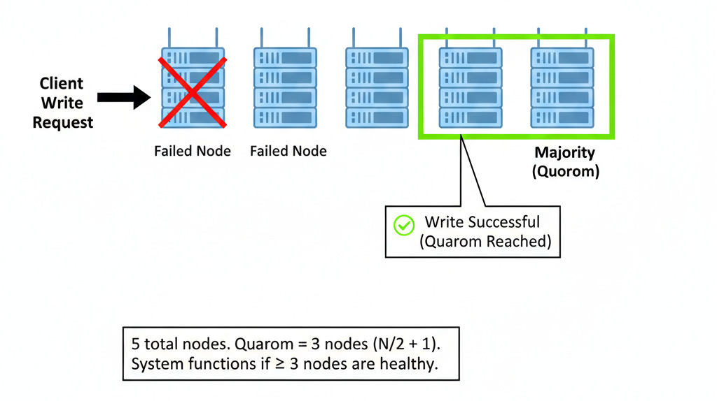 Distributed consensus systems solve this by enforcing a mathematical rule known as Quorum.