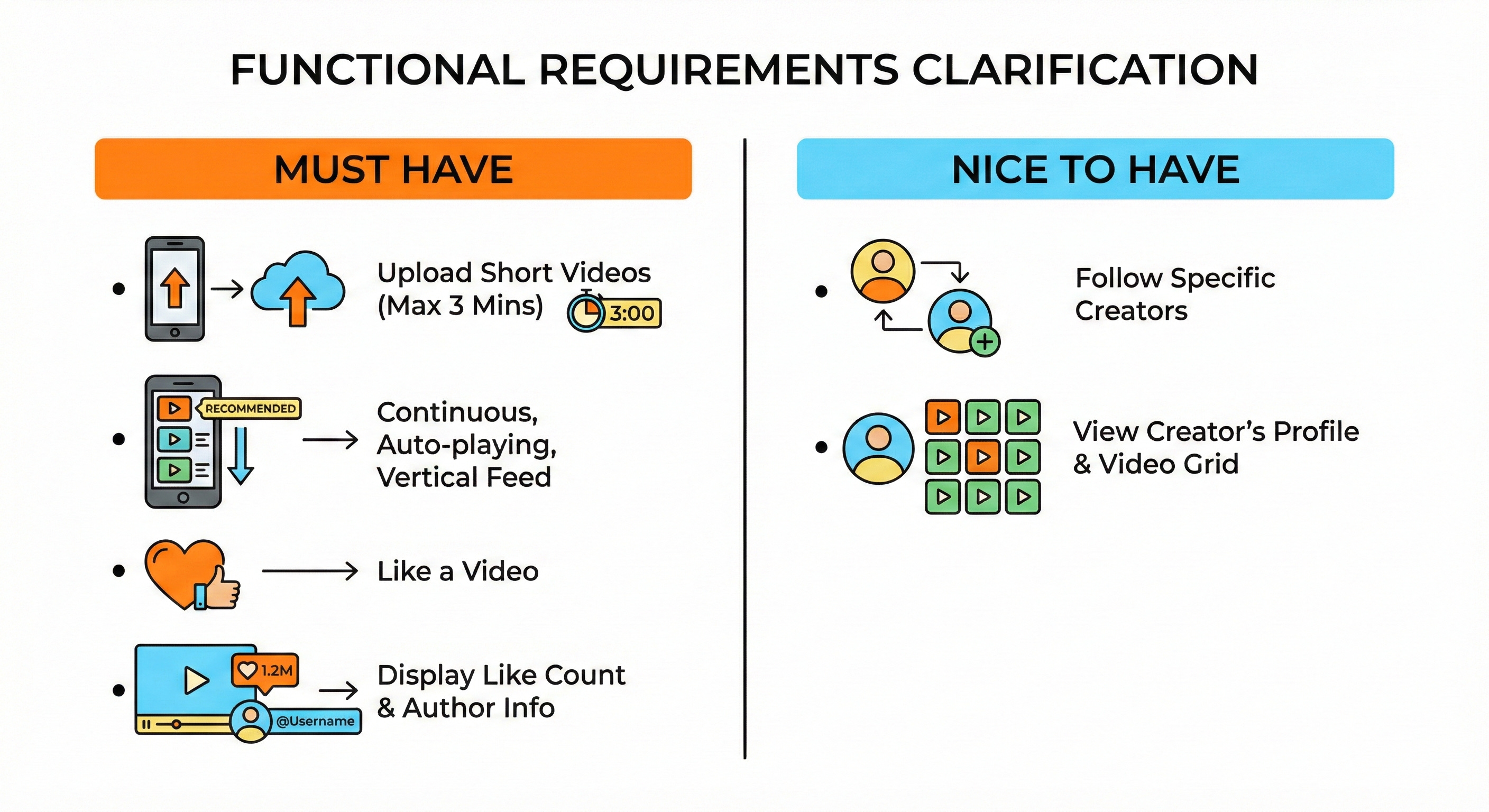 Because TikTok is a massive system, we will narrow the scope to the core loops.