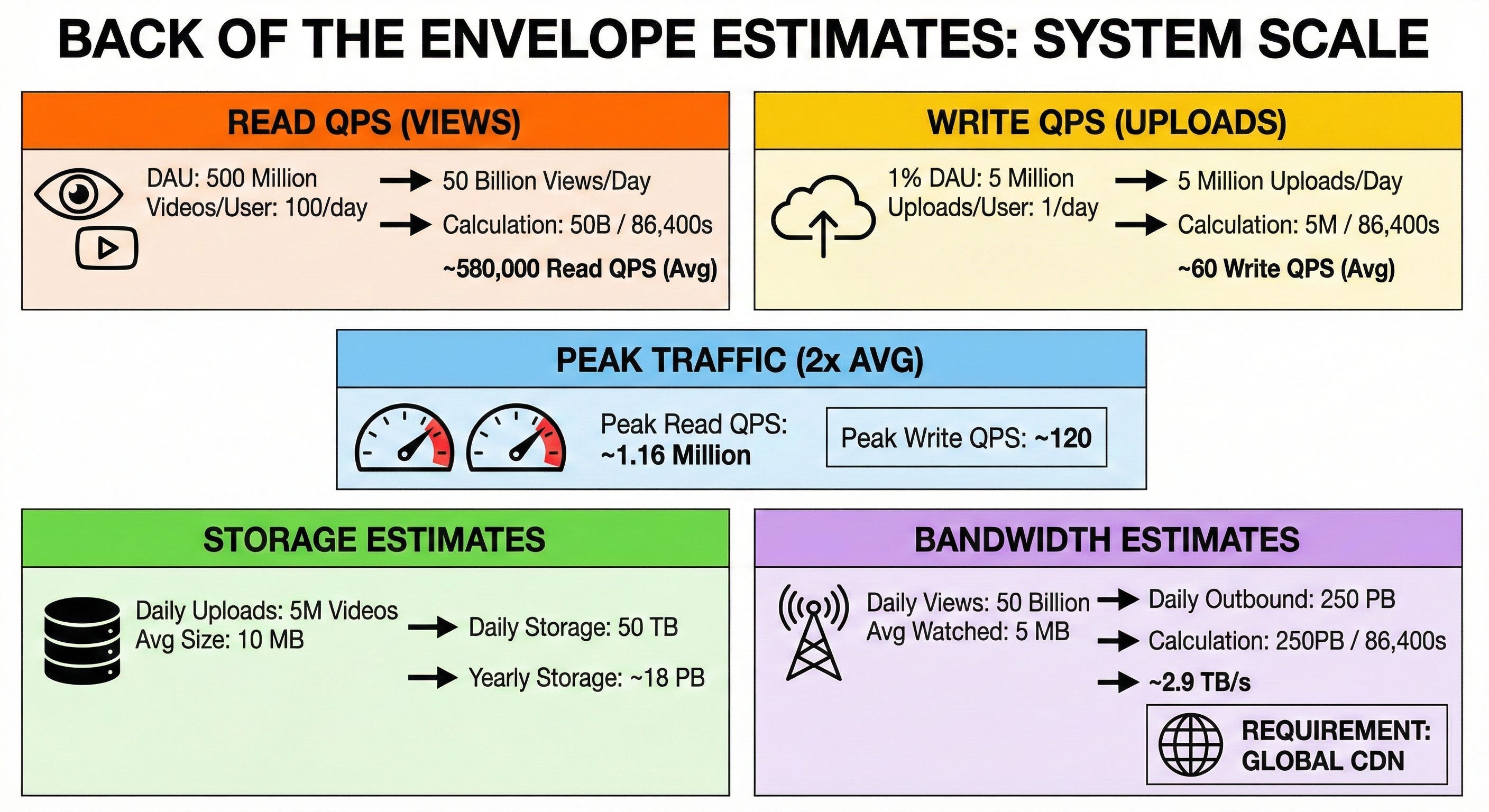 50 billion views × 5 MB = 250 PB of outbound data per day.