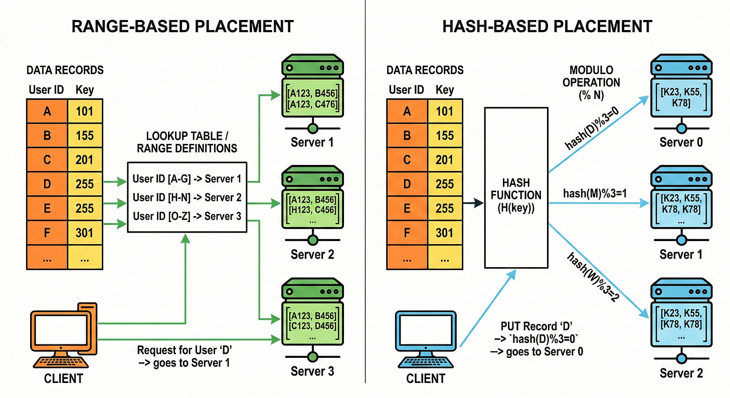 The trade is that range queries become harder, because adjacent keys do not land near each other. A range query may touch many shards.