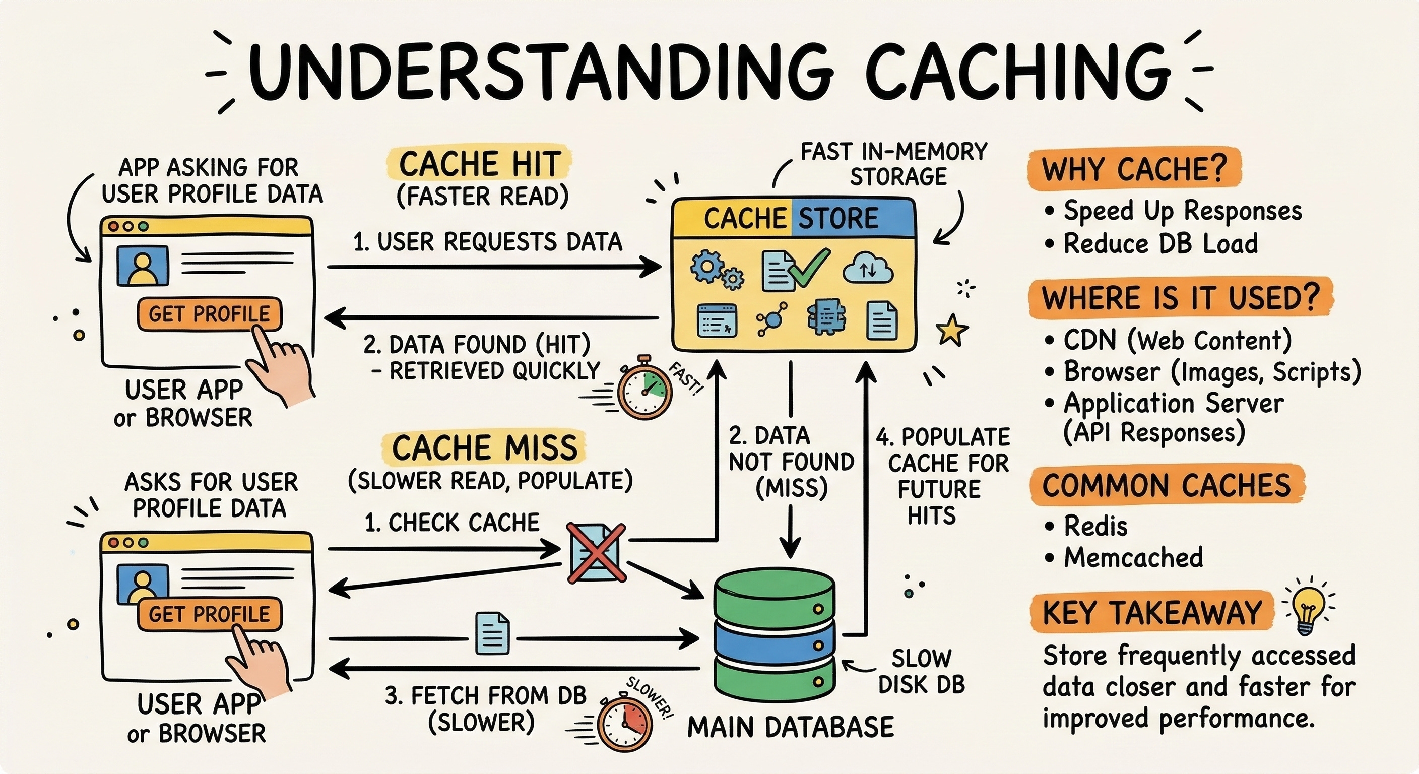 Instead of searching a physical hard drive, the system instantly grabs the duplicate copy from active memory. This fundamental distributed systems concept accelerates application speed and protects primary databases from crashing under heavy load.